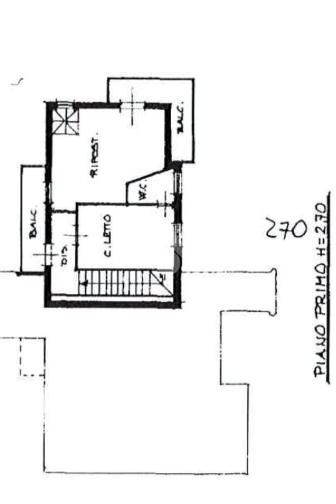 Primo Piano: Accesso da scala in muratura, disimpegno, camera matrimoniale con balcone, seconda camera matrimoniale, bagno principale finestrato con vasca.